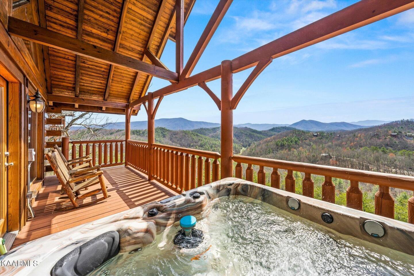 When it's time to get away, this is your cabin with those views! This cabin overlooks the Great Smoky Mountain National Park. Stylish amenities throughout, from the interior jacuzzi to the exterior hot tub, no detail is left unattended to in this mountain top cabin. Located in The Preserve Resort in Wears Valley. Expect curvy & narrow mountain road. Guests will also have free access to Honeysuckle Pool located at the base of mountain for summer enjoyment of swimming & catch & release fishing.