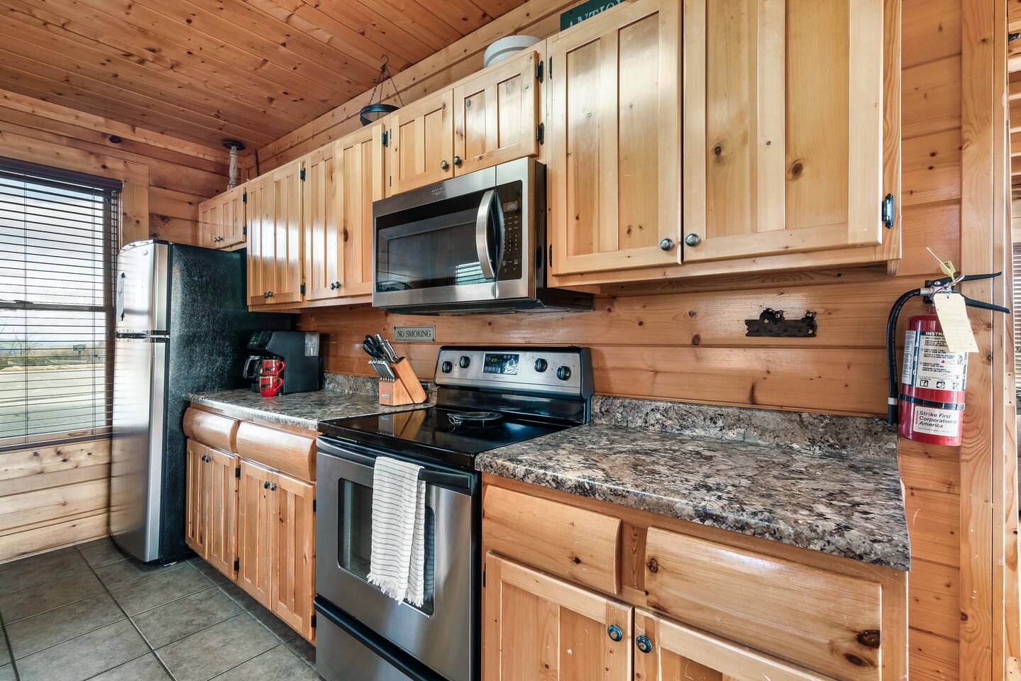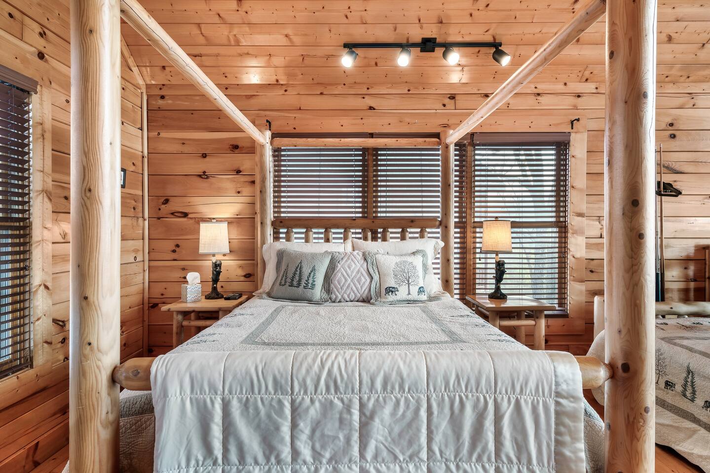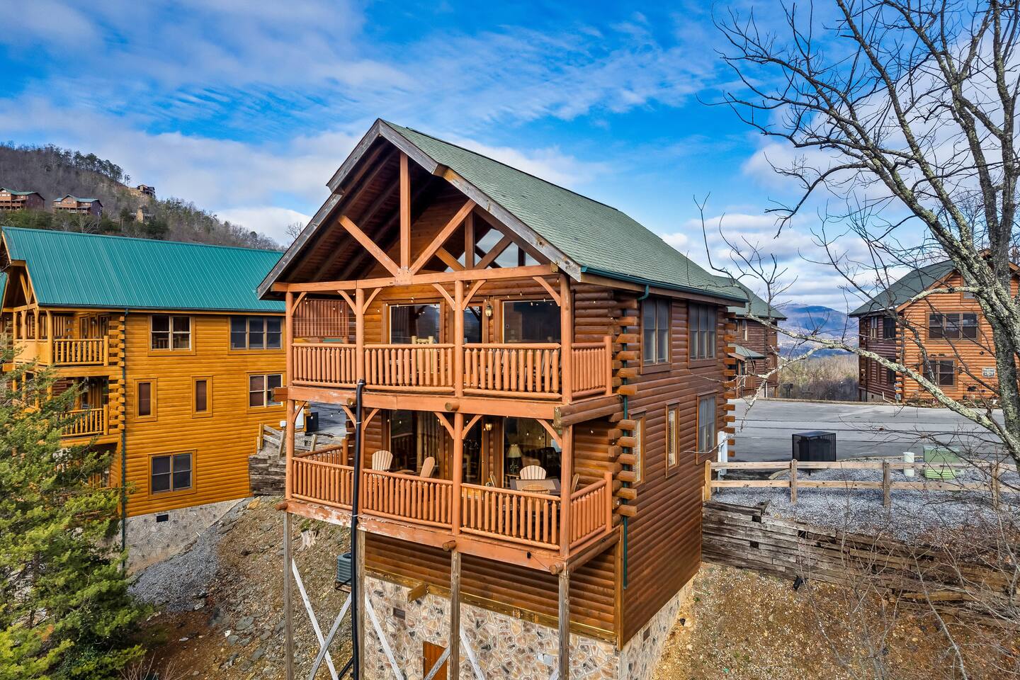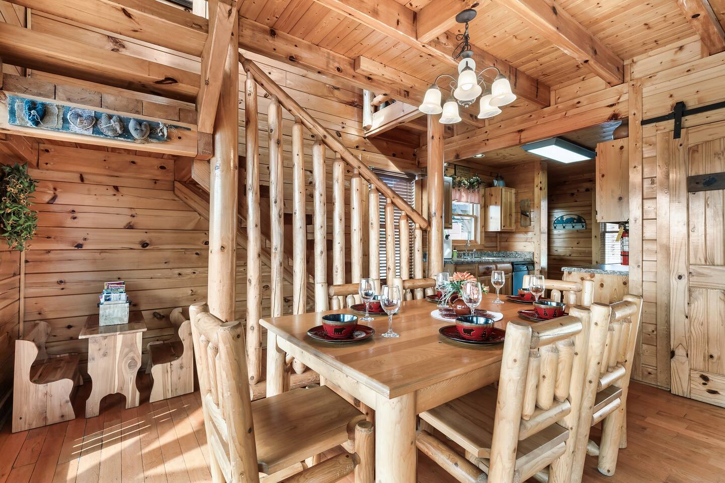 -open floor plan -2 porches overlooking mountains and wildlife -hot tub -jacuzzi - fully stocked kitchen -fireplace (electric, turn on easily with the flip of a switch, blows heat into room) -interior dining table area for 6 -exterior dining area for 4 -King suite on main level -2nd level queen bed with jacuzzi bath with separate walk-in shower -2nd level daybed with trundle (2 twin mattresses) - 2nd level pool and foosball tables -3rd floor sleeping loft (2 full size floor beds)