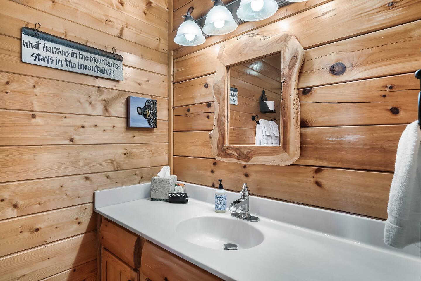 Happy Hours Cabin is located in the Preserve Resort of Wears Valley. The beautiful resort features the most beautiful views of the Great Smoky Mountains. You'll find landscaped flower beds, lighted streets at night, with a vacation flair. You'll know as soon as you enter, "The Preserve, it's your place for Mountain vacation fun! The cabin is located between Pigeon Forge and Cades Cove, in beautiful Wears Valley. The Valley has it's own vibe, shops, food trucks, restaurants, fishing, tubing, & so much more. We love being so close to the attractions, yet just a short distance back to our peaceful mountain top hideaway. The cabin is 20 minutes to Dollywood's parking lot, 10 minutes to Pigeon Forge, 20 minutes to Gatlinburg, and 10 minutes to Cades Cove. Did we mention bear, yes, you'll more than likely catch a glimpse, always pay attention to your surroundings, there is so much wildlife in the Smokies, on the way up the mountain, you'll see a house with a yard full of wild turkeys. You've entered a beautiful part of the world, nature abounds. Expect curvy & narrow mountain roads. You'll have free access to Honeysuckle Meadows Pool, located at the base of the mountain (just let them know your staying at Happy Hours Cabin). The large pool has a deli with plenty of seating for your enjoyment. You will also find a fun fishing pond available as well.